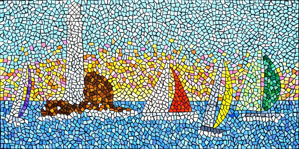 In this gallery, you will find many of my original creations, each piece reflecting my passion for art and creativity. Vibrant paintings designed to look like intricate mosaics, every artwork tells a story and invites you to immerse yourself in the world of colour. Whether you're looking to add a touch of elegance to your home or interested in joining one of my art classes, you'll find something special and totally individual.